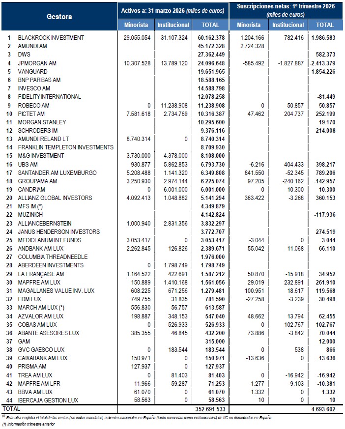 El patrimonio de las IIC Internacionales comercializadas en España, se situaría en 383.000 millones de euros (352.691 millones para las Gestoras asociadas a INVERCO que facilitan dato). El volumen estimado de activos: incremento de 13.000 millones.