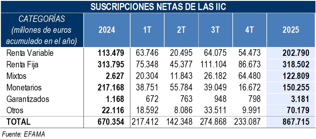 Suscripciones netas de 64.480 millones de euros, a 2025 registró 122.809 millones de euros