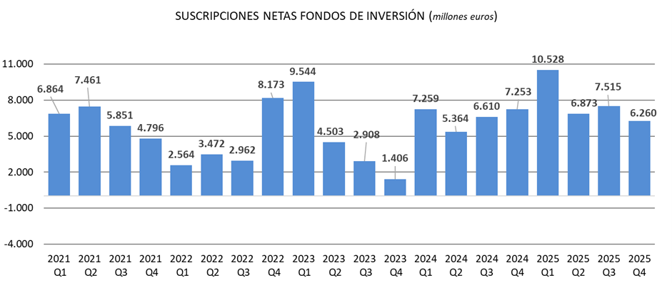 En el undécimo mes del año los Fondos de Inversión volvieron a registrar suscripciones netas positivas, que superaron los 2.850 millones de euros. Solo hasta noviembre, el volumen de suscripciones netas alcanza los 31.175 millones de euros, la mayor cifra acumulada hasta noviembre desde 2014.