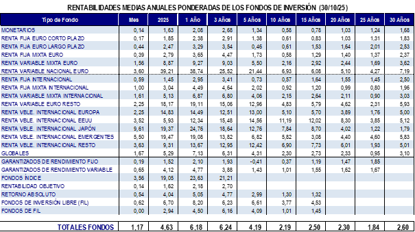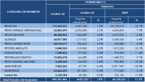Fondos de Inversión octubre 2025