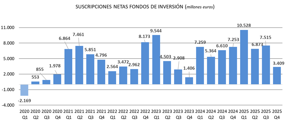 En el décimo mes del año los Fondos de Inversión volvieron a registrar suscripciones netas positivas, que superaron los 3.408 millones de euros. Solo hasta octubre, el volumen de suscripciones netas alcanza los 28.324 millones de euros, superando así las registradas en los últimos 11 años.