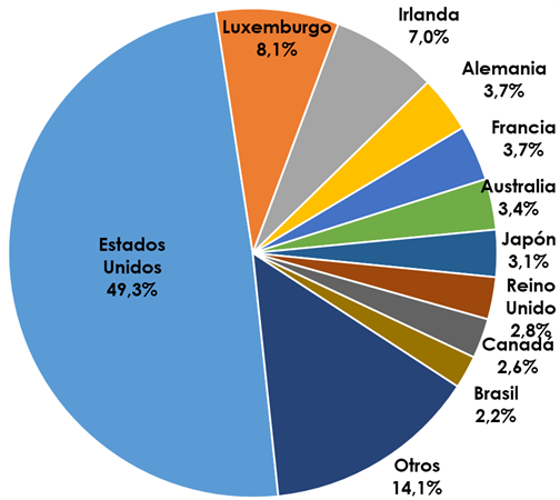 Por países, la inversión en ETF se concentra en Estados Unidos con un 70,3% del total mundial.